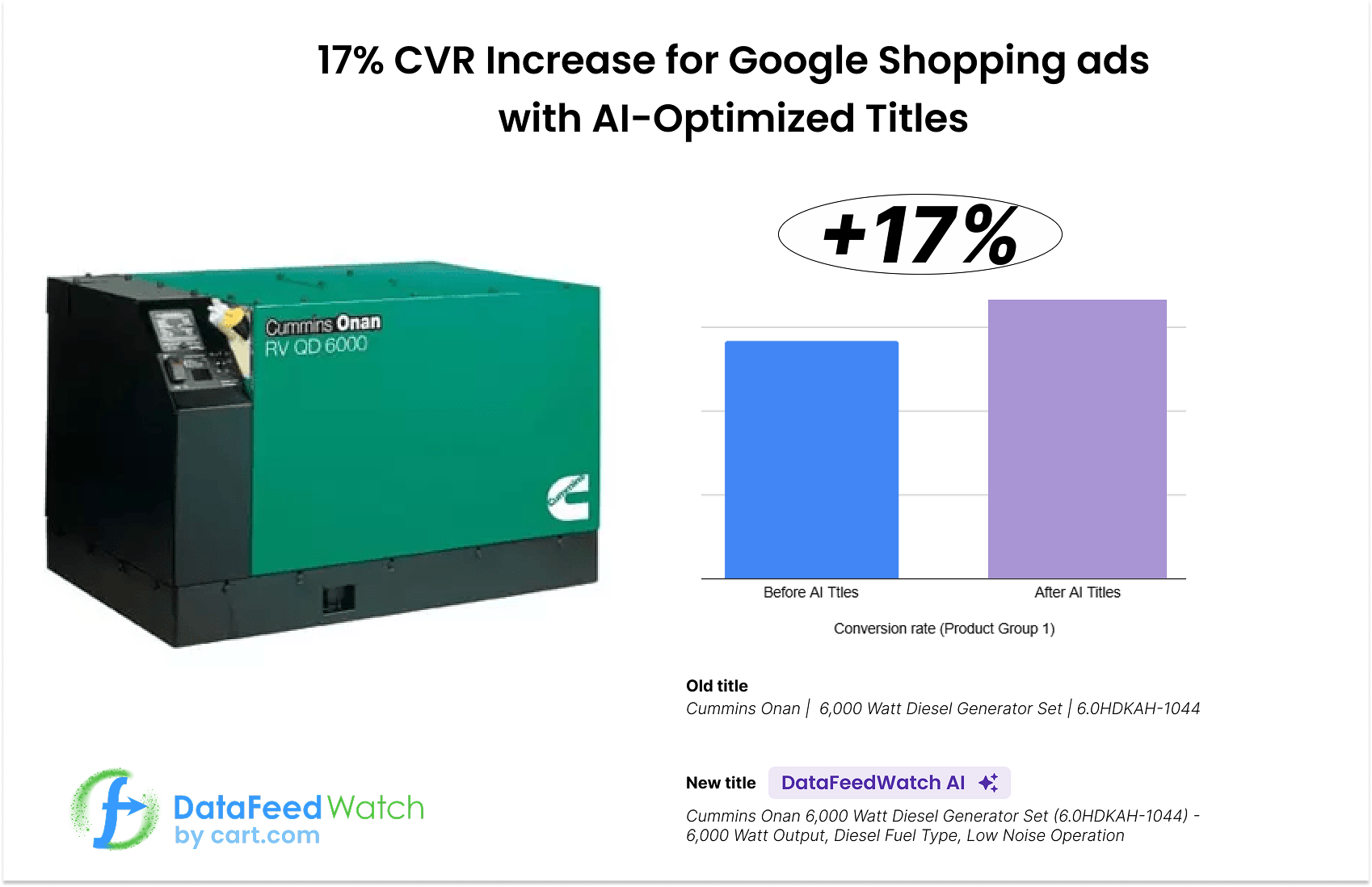 - Our AI-powered feed optimization has already transformed the way advertisers work. See real-world results and case studies from businesses using DataFeedWatch AI for feed optimization.