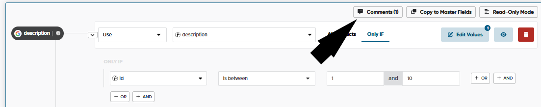You can find the Comments feature when you go to Master Fields mapping or a specific channel that you use (Google Shopping, Facebook, etc). There you will see new buttons named “Comments”.