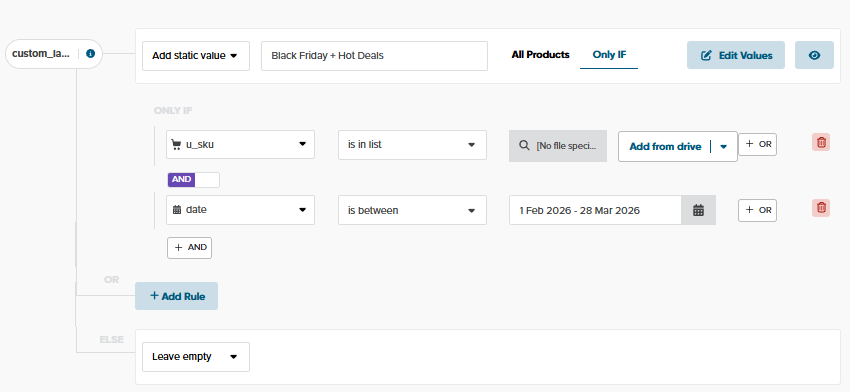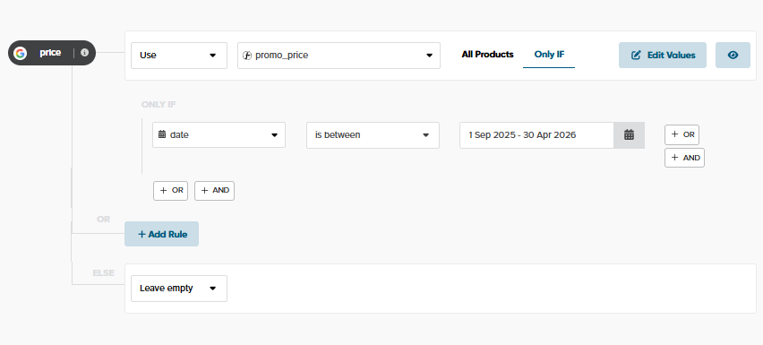 The Date Selector functionality allows you to improve your feeds in a timely fashion. From now on, you’ll be able to apply date-based rules in any field of your feed.