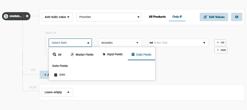 Date Selector is available to use in any IF statements you create for your feed rules. Whether it’s Master Fields, the mapping section of your channel or in the Exclusion tab - you can use it to improve the organisation of your feed and most importantly...your timing!
