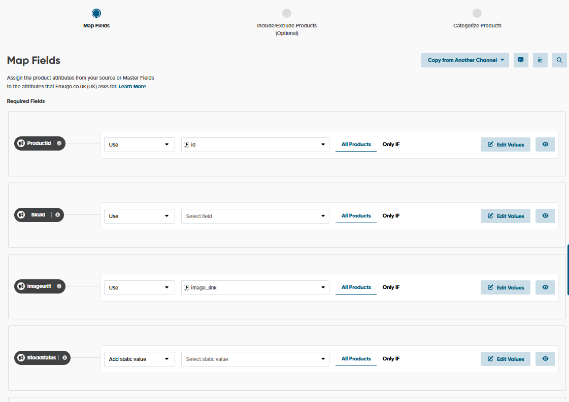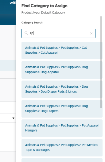Now when mapping product categories, you'll be able to see the full list of categories that are accepted by Fruugo. This will save you time from needing to look up products in the Fruugo categorization tree to find the correct structure.