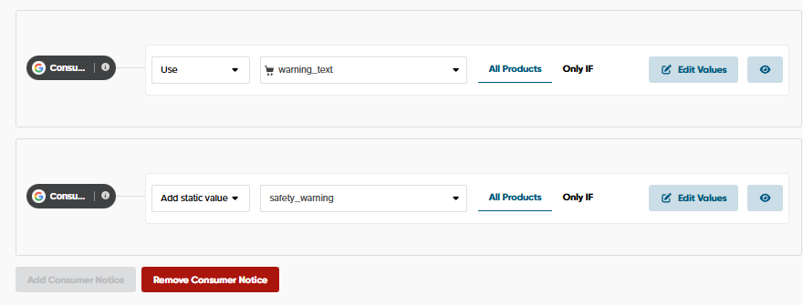 - consumer_notice_type: Must be one of three: legal_disclaimer, safety_warning, or prop_65.