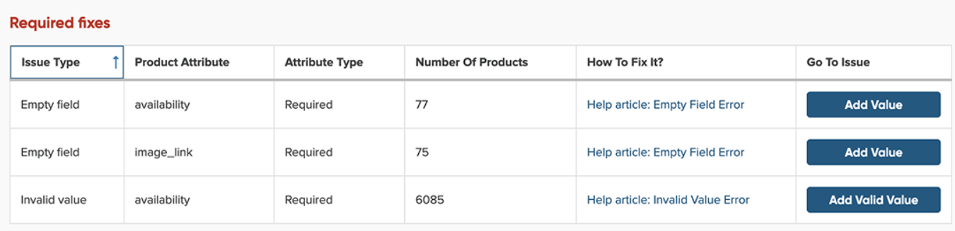 Advertising channels all have different requirements. For example, Google Merchant Center can block products with missing required attributes like gender, age_group, or color.
