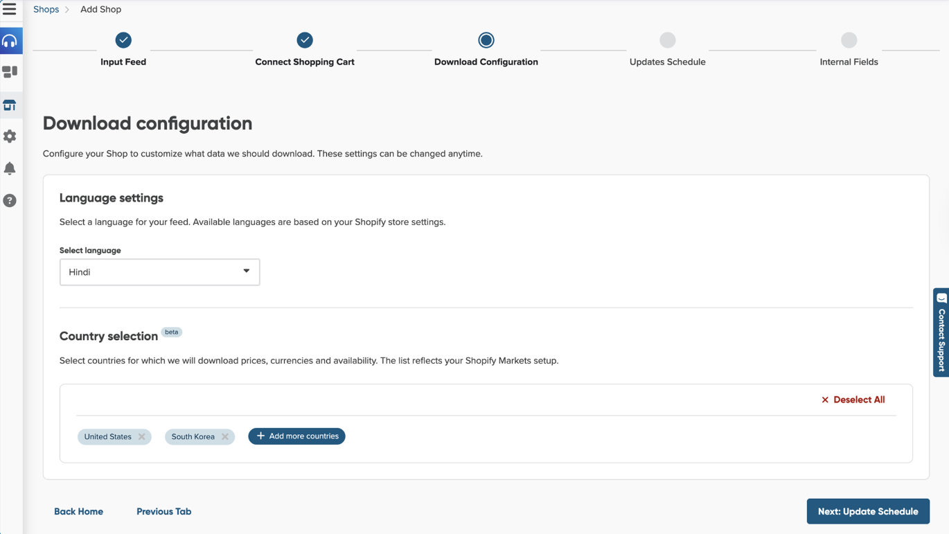 - You connect your Shopify store to DataFeedWatch and select both Germany and Austria as your target markets.