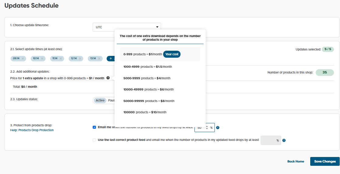 You’ll be able to get an estimated cost before deciding based on the amount of products you have. Just add the extra updates you want on the Updates Schedule step of the shop wizard (or in your shop settings) and the prices will appear.