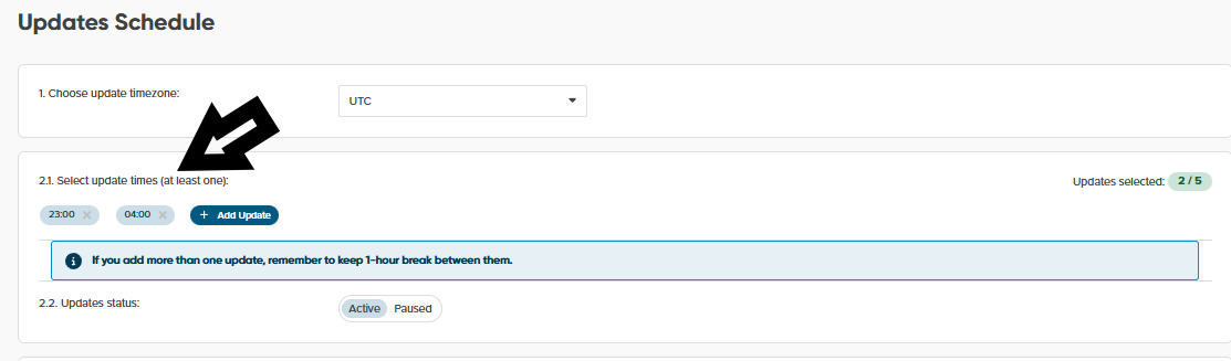 Step 3: Select your desired time zone, and then choose the times you would like your products to be updated.