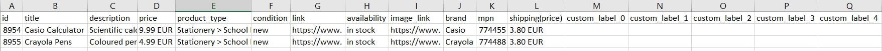 In a product feed, there can be many columns and each of them contains some data about the product. These include: