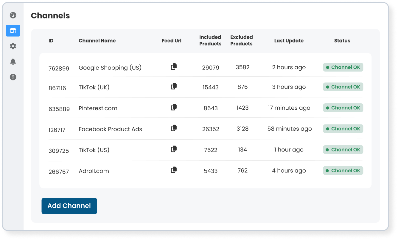 Our system checks your feeds for any issues before uploading them to channels. You can also clone your feed setups across other channels.
