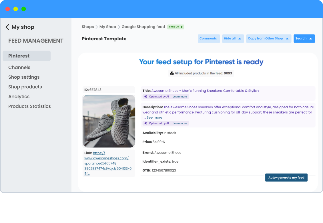Generate an optimized feed for your campaigns with a single click.